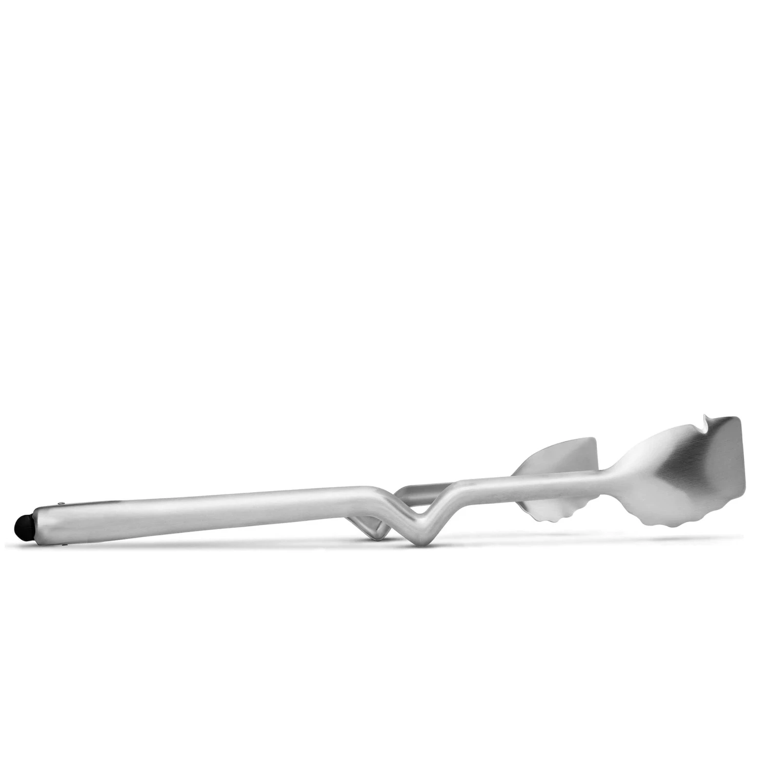 BBQ Clongs are click-lock tongs designed specifically for the barbecue. They have a flat tip to scrape your barbecue clean, a spike to prick your sausages, a sausage link cutter to separate your sausages and waffle heads to pick up even the smallest pieces of onion. Whatโs more, when you put them down they sit up off your bench thanks to the clever bend in their handles.