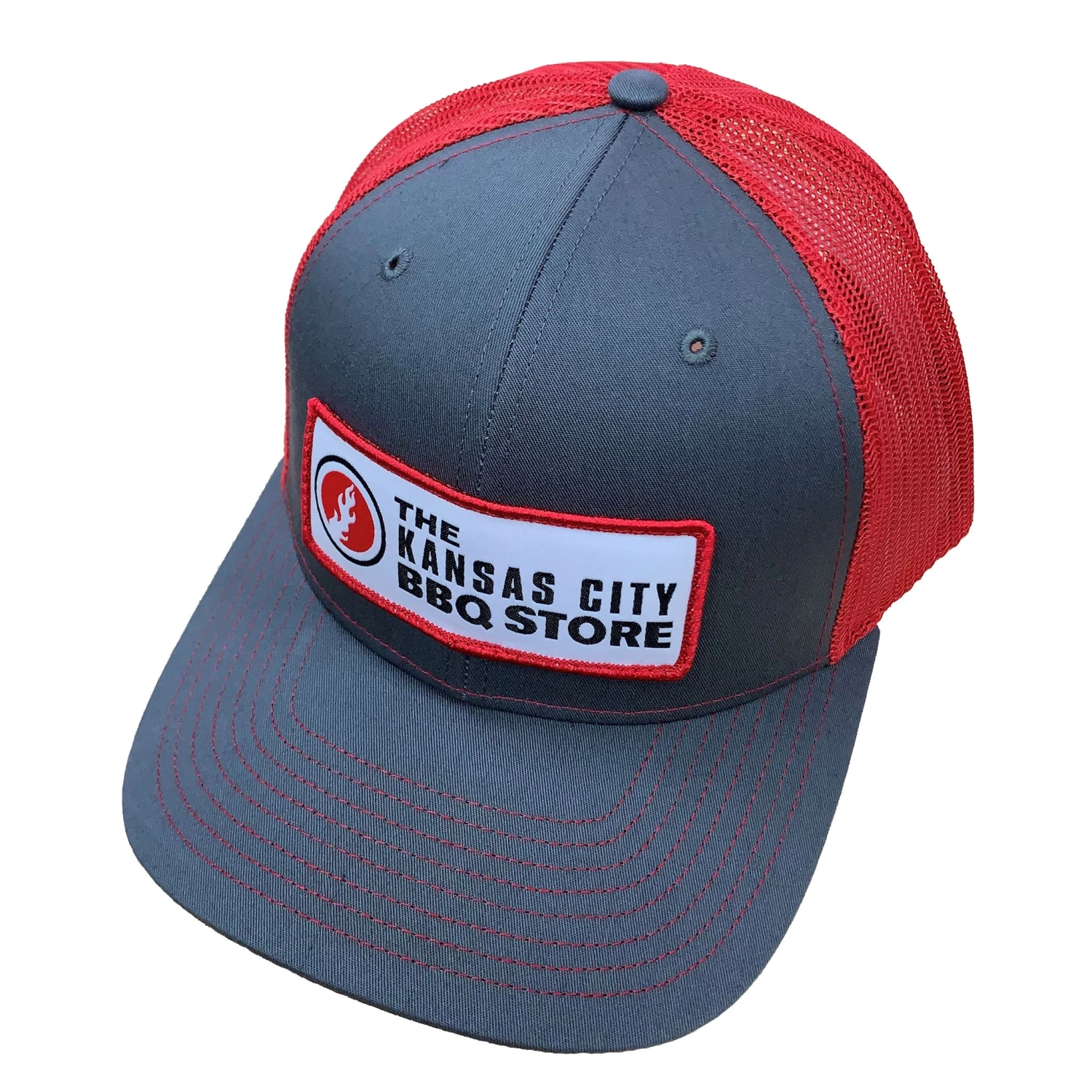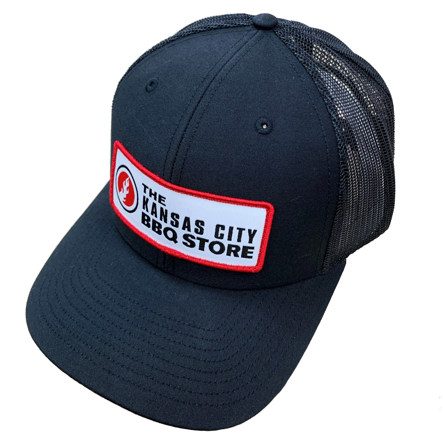 The Kansas City BBQ Store woven patch on a snap back, mesh ‘trucker’ style hat available inΒ 8 color combinations.