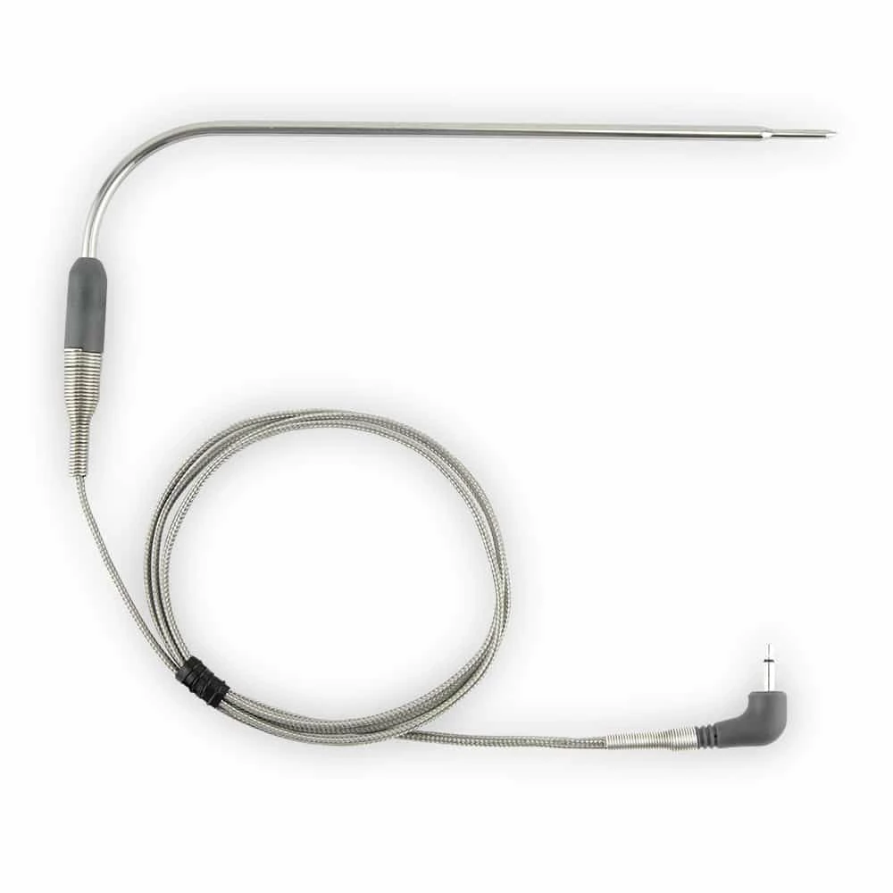 Pro-Series High Temp Cooking Probe 6″ Long probe with a right angle bend for easy pulling from meats or turkeys. Probe tip and sensor read temperatures to 572Β°F for deep-frying. Good general-purpose probe, the length reaches the center of large roasts and turkeys.